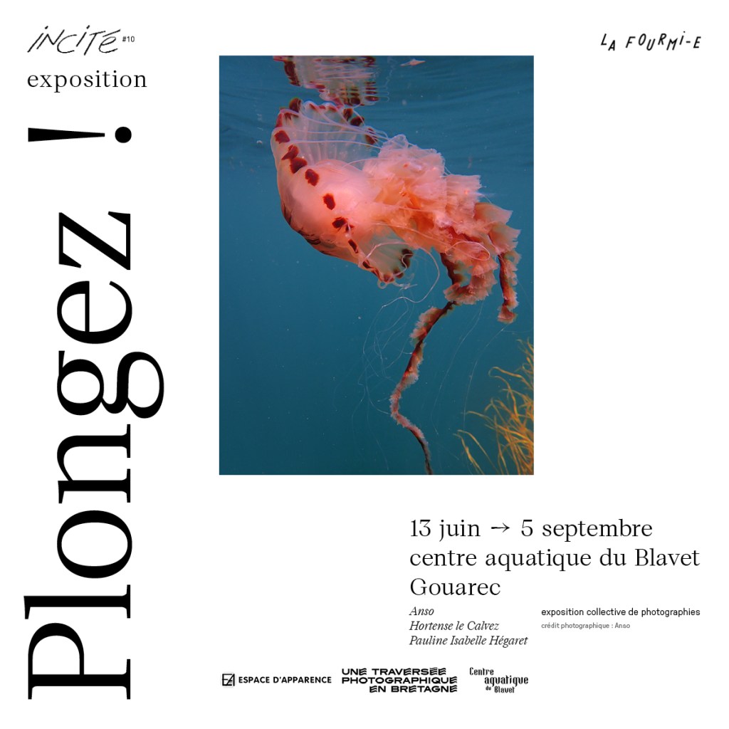 Dans le cadre d’In Cité #10, La fourmi-e, en partenariat avec la Communauté de Communes du Kreiz Breizh (CCKB), Le Centre aquatique du Blavet et Espace d’Apparence, vous invite à vous mettre physiquement et visuellement à l’eau. Cette exposition au contexte insolite prolonge le parcours d’art initié sur cette nouvelle édition d’In Cité, mais illustre également l’ensemble de la thématique du festival: l’EAU.