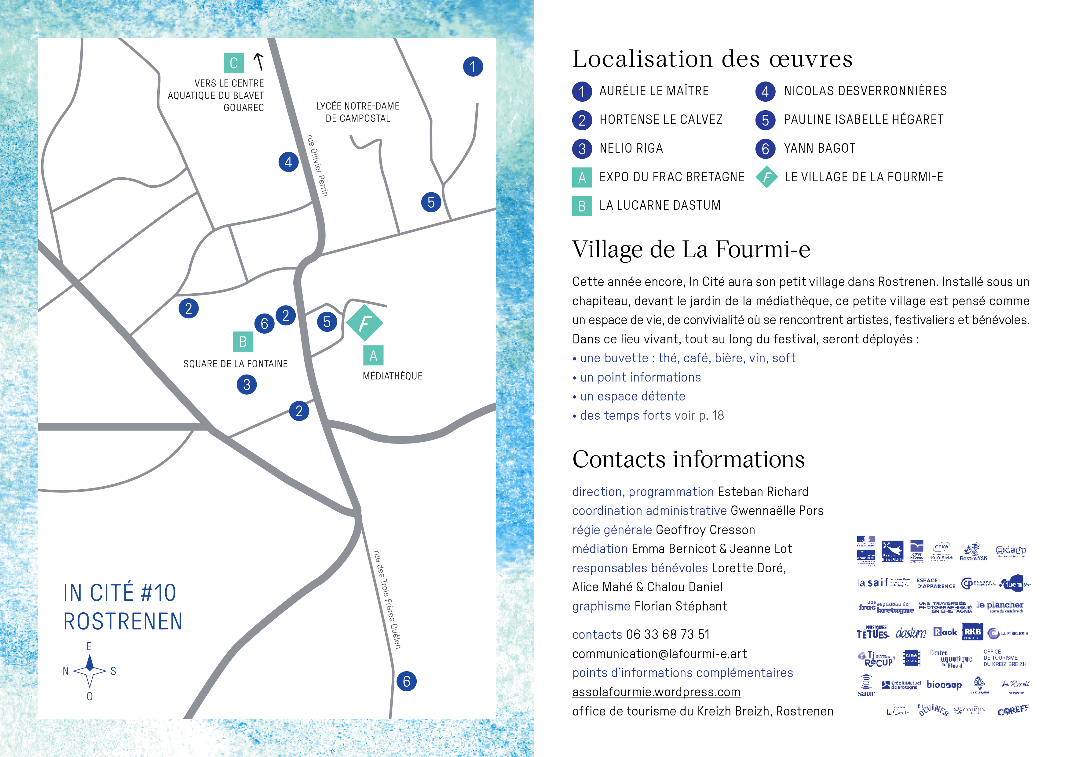 In Cité est un festival d’art visuel et contemporain qui se déroule chaque année à Rostrenen (22), dans l’espace public. Ponctué par plusieurs temps forts : visites guidées, ateliers participatifs, rencontres, projections de films et de documentaires, performances, spectacles, et autres, In Cité c’est aussi et avant tout un temps et un espace donné pour des artistes et leurs créations.